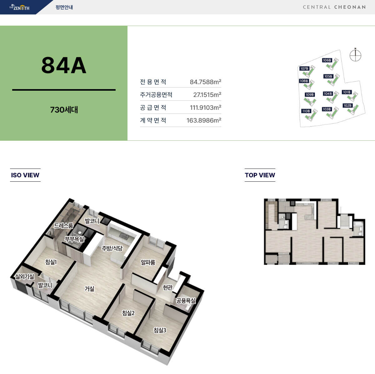 세대수: 84㎡ A/B/C, 총 1,202세대